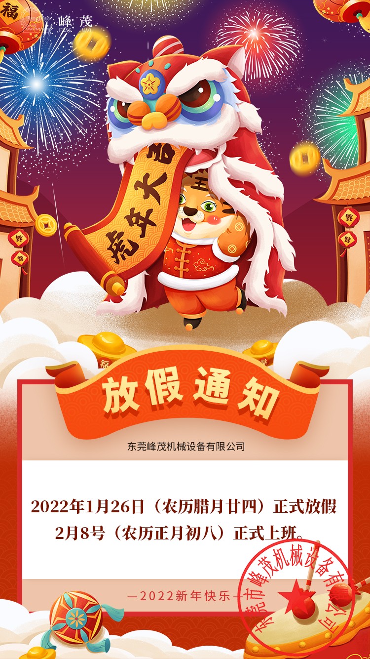 峰茂機械設備有限公司2022春節(jié)放假通知: